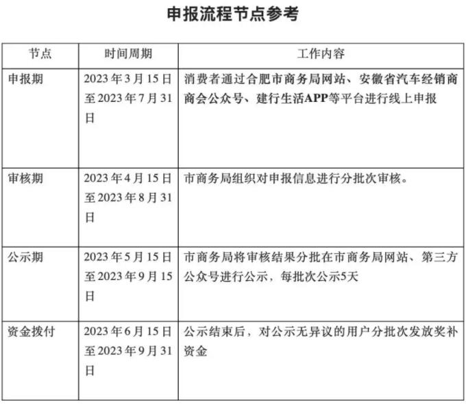 補貼申請須由個人用戶發(fā)起。申請人可以通過個人登錄合肥市商務(wù)局網(wǎng)站、合肥發(fā)布等查看申報通知和申報入口,申報期自2023年3月15日至7月31日,具體申報信息以市商務(wù)局網(wǎng)站等公告為準,須提交以下信息: