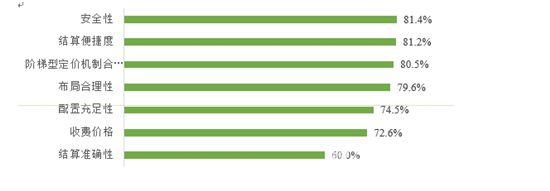 四是充電樁安全性、結(jié)算便捷性滿意度較高,滿意度均在80%以上,充電價(jià)格、結(jié)算準(zhǔn)確性有待進(jìn)一步提升。由此表明,受訪者在充電收費(fèi)價(jià)格和結(jié)算準(zhǔn)確性方面期待較高,期望進(jìn)一步優(yōu)化充電收費(fèi)價(jià)格,提高結(jié)算準(zhǔn)確性。
