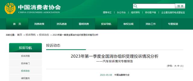 5月8日,中國(guó)消費(fèi)者協(xié)會(huì)網(wǎng)站發(fā)布汽車(chē)投訴情況專(zhuān)題報(bào)告,并就此提出建議: