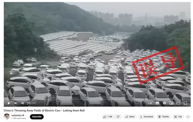 近段時(shí)間,推特、Youtube等社交平臺(tái)上廣泛流傳說(shuō)法稱,“中國(guó)對(duì)電動(dòng)汽車投資過(guò)度”“中國(guó)正在丟棄大量汽車,任其腐爛”、“浪費(fèi)”。有關(guān)說(shuō)法通常配有圖片或視頻,顯示在雜草叢中停放著上百輛汽車。