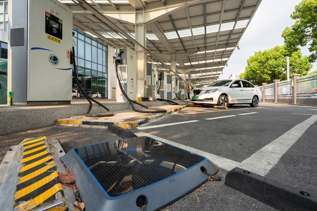 新能源汽車(chē)正在進(jìn)行無(wú)線(xiàn)充電。