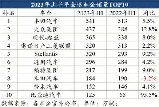 今年上半年,憑借著125萬輛的成績,全球新能源市場(chǎng)兩大巨頭之一的比亞迪,首次躋身全球車企銷量十強(qiáng),超過了常年在榜單中占有一席之地的寶馬集團(tuán)和梅賽德斯-奔馳集團(tuán)。