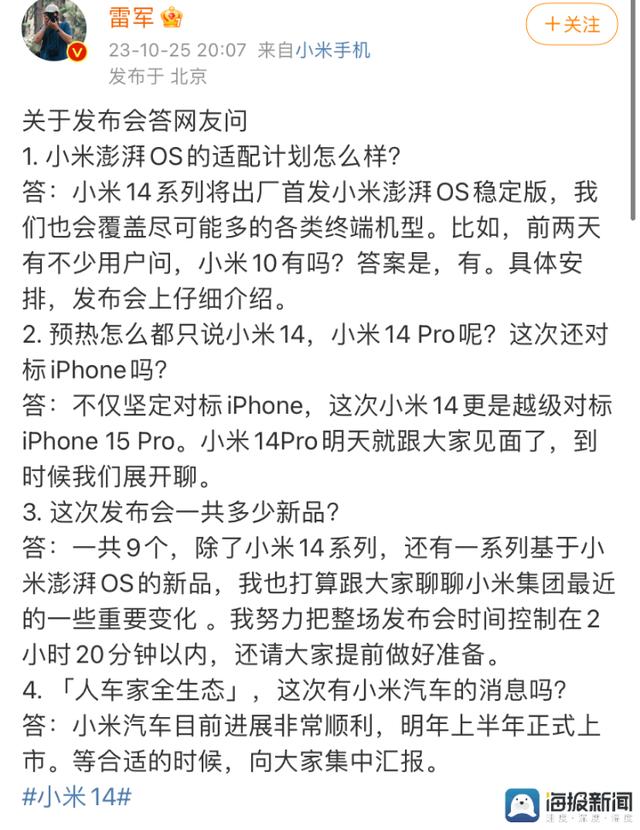 雷軍在社交平臺(tái)答網(wǎng)友問
