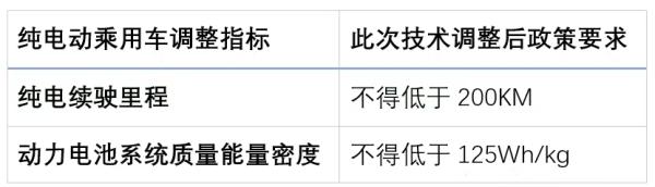 首先是純電續(xù)駛里程,此次技術(shù)調(diào)整后政策要求,新車純電續(xù)駛里程必須大于等于200KM才可減免。其次是動力電池系統(tǒng)質(zhì)量能量密度,此次技術(shù)調(diào)整后政策要求,新車動力電池系統(tǒng)質(zhì)量能量密度必須大于等于125Wh/kg才可減免。