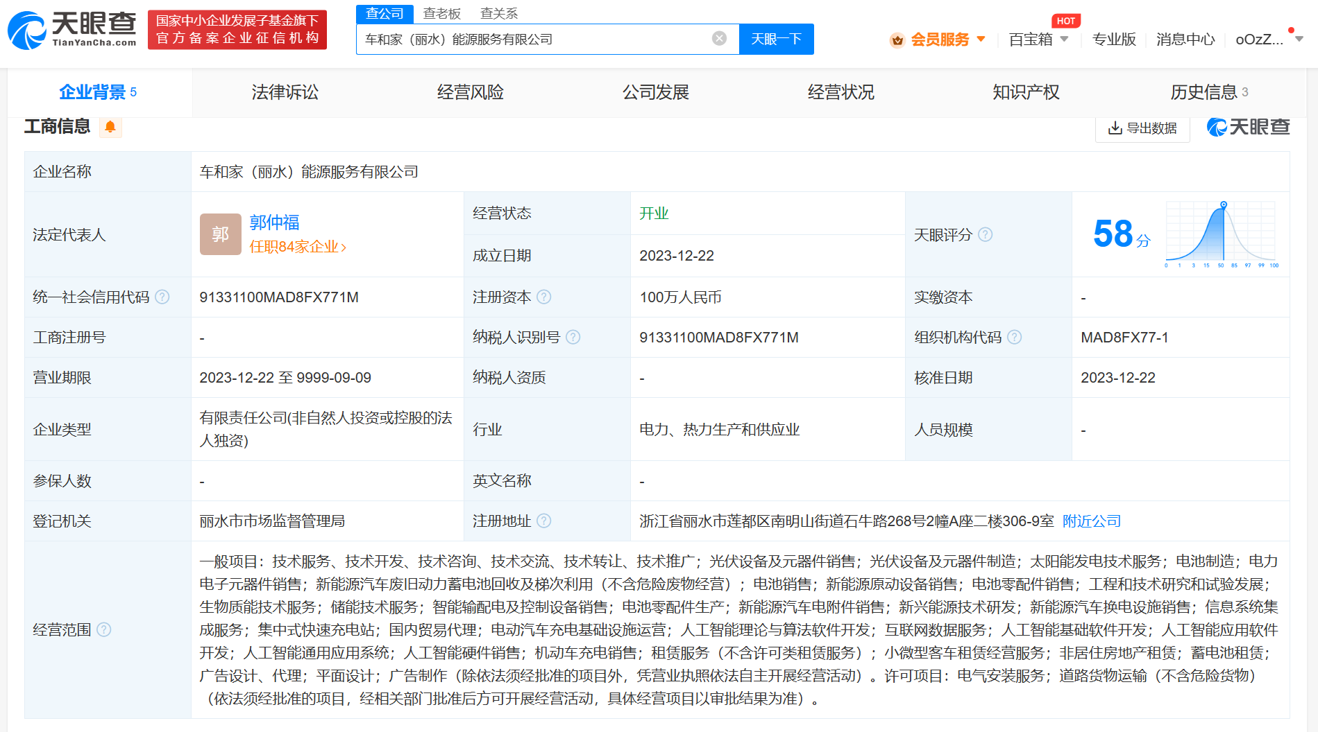 近日,車和家(麗水)能源服務有限公司成立,法定代表人為郭仲福,注冊資本100萬人民幣,經(jīng)營范圍含光伏設備及元器件制造、電池制造、電力電子元器件銷售、電池零配件生產、人工智能應用軟件開發(fā)、小微型客車租賃經(jīng)營服務等。股東信息顯示,該公司由理想汽車旗下北京車和家能源服務有限公司全資持股。