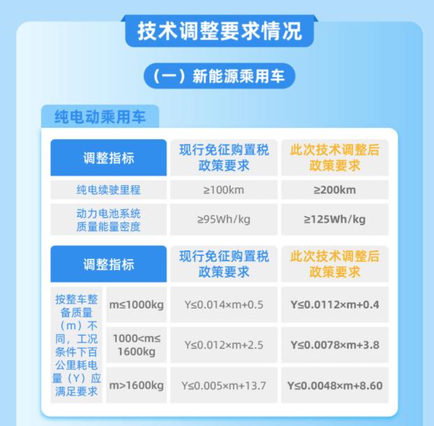 2023年12月11日,工信部、財(cái)政部、稅務(wù)總局三部門(mén)聯(lián)合發(fā)布《關(guān)于調(diào)整減免車(chē)輛購(gòu)置稅新能源汽車(chē)產(chǎn)品技術(shù)要求的公告》(下稱(chēng)12月最新公告),更新了享受減免車(chē)輛購(gòu)置稅的新能源汽車(chē)產(chǎn)品的技術(shù)要求,提升了整車(chē)能耗、續(xù)駛里程等多項(xiàng)指標(biāo),明確了換電模式車(chē)型的相關(guān)要求。