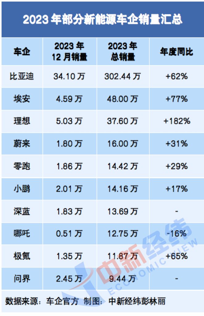 近日,中國多家新能源車企公布了2023年12月以及2023年全年的交付數(shù)據(jù)。