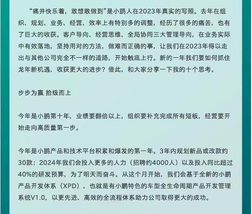 農(nóng)歷新年復(fù)工后的一個月的時間里,是新能源行業(yè)HR最忙的一段時間之一,“搶人大戰(zhàn)”一觸即發(fā)。彼時,不少車企的員工在年終獎到手后開始尋找新的工作機會,而造車新勢力小鵬更是抓住這一關(guān)鍵時期直接在開工信中表示2024年要新招聘4000人,再發(fā)兩款新車以實現(xiàn)業(yè)績翻倍。