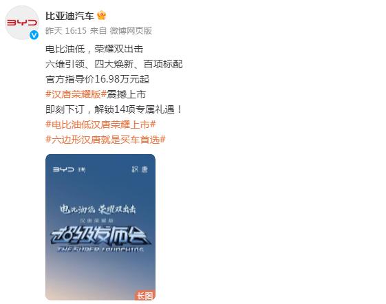 近期,比亞迪陸續(xù)發(fā)布多款“榮耀版”車型,包括起售價(jià)7.98萬(wàn)元的秦PLUS榮耀版和驅(qū)逐艦05榮耀版,以及起售價(jià)9.98萬(wàn)元的海豚榮耀版。對(duì)此,有網(wǎng)友評(píng)價(jià)稱,“估計(jì)現(xiàn)在其他所有廠家看到‘榮耀’兩個(gè)字腦袋就大”。
