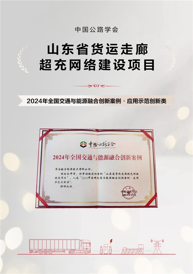 本網(wǎng)訊 近日,華為數(shù)字能源技術(shù)有限公司 “山東省貨運(yùn)走廊超充網(wǎng)絡(luò)建設(shè)項(xiàng)目”成功入選“2024年全國(guó)交通與能源融合創(chuàng)新案例·應(yīng)用示范創(chuàng)新類”,充分彰顯了華為在推動(dòng)交通與能源融合創(chuàng)新方面的積極貢獻(xiàn)和顯著成就。