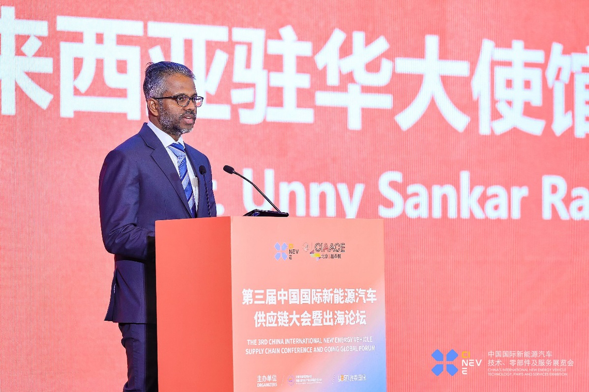 國家信息中心正高級經(jīng)濟(jì)師徐長明先生發(fā)言國際合作展望:共探出海廣闊前景新能源汽車產(chǎn)業(yè)全球化趨勢日益明顯,國際合作與出海發(fā)展成為企業(yè)拓展市場、提升競爭力的重要途徑。本環(huán)節(jié)旨在為國內(nèi)外企業(yè)搭建溝通橋梁,來自7個國家的駐華使節(jié)分享各國新能源汽車產(chǎn)業(yè)的市場機(jī)遇與優(yōu)惠政策,為中國企業(yè) “走出去” 提供精準(zhǔn)信息,同時幫助國外企業(yè)尋求合作,促進(jìn)資源共享與技術(shù)交流,攜手開拓全球市場,實現(xiàn)互利共贏,提升中國新能源汽車產(chǎn)業(yè)的國際地位。出海政策:馬來西亞馬來西亞駐華大使館經(jīng)濟(jì)公使Unny Sankar Ravi Sankar先生發(fā)表演講。他高度認(rèn)可中國在新能源汽車行業(yè)的全球領(lǐng)導(dǎo)地位,期望中國能與馬來西亞中小企業(yè)分享技術(shù),共同開發(fā)前沿技術(shù),實現(xiàn)互利共贏。他提到,“一帶一路”