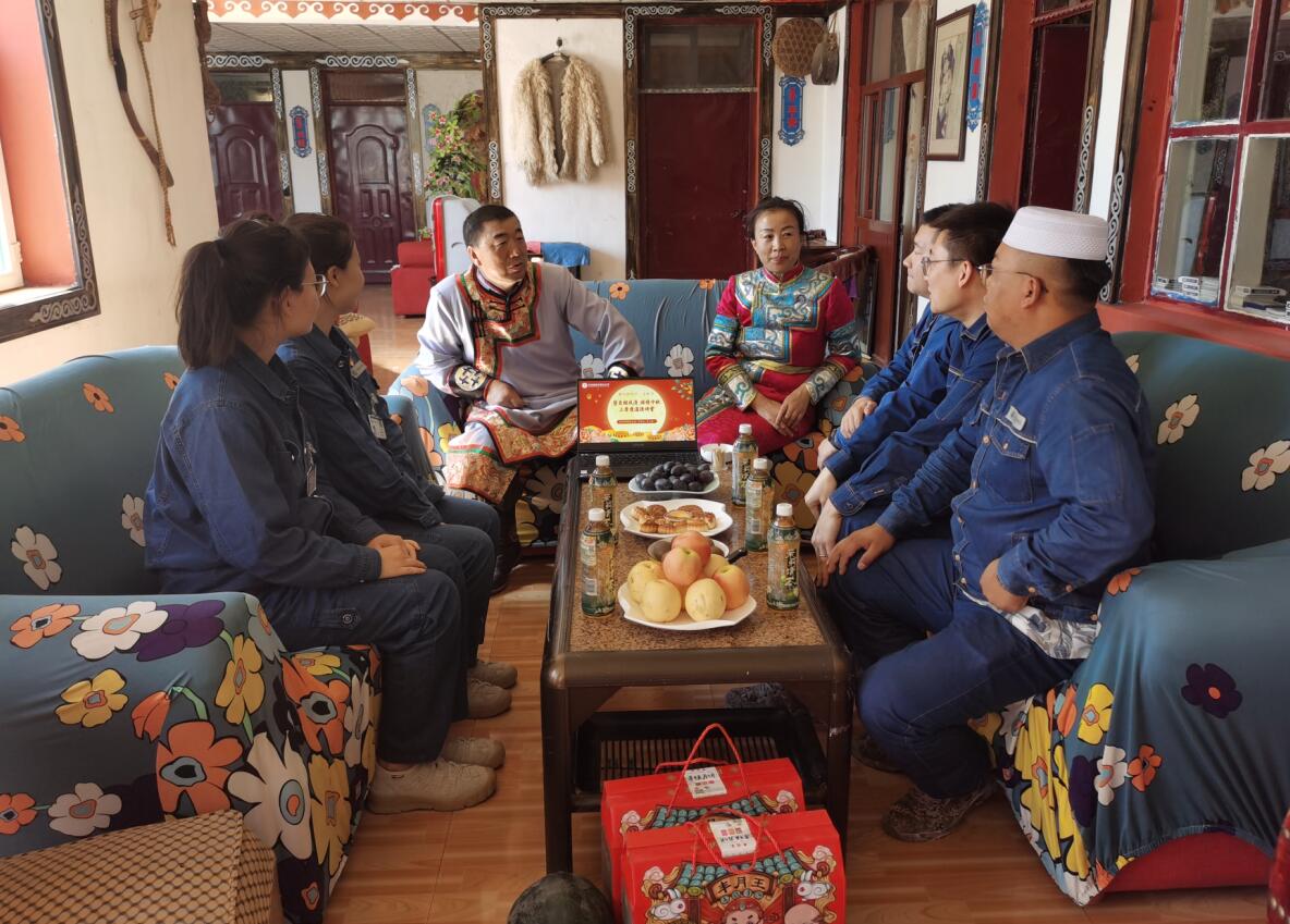 運(yùn)行人員向牧民致以誠(chéng)摯的節(jié)日問(wèn)候和祝福,聲聲問(wèn)候顯真情,句句祝福暖人心,牧民熱情地與大家聊家常,傾聽(tīng)牧民的往事回憶。聊天中牧民大叔說(shuō)道:“在禁牧條例下發(fā)的幾年后,草原上鼠災(zāi)泛濫,老鼠肆意啃食植物根部,使草場(chǎng)遭到嚴(yán)重破壞,后來(lái)政府聯(lián)系我們,允許我們適當(dāng)放牧來(lái)維護(hù)草原的生態(tài)平衡,也解決了我們的燃眉之急,非常感謝政府對(duì)我們牧民們的關(guān)照,感謝民族團(tuán)結(jié)這個(gè)大家庭對(duì)我們這個(gè)小家庭無(wú)微不至的關(guān)懷,讓我們生活的更加幸福。”離別時(shí),牧民熱情地與運(yùn)行人員共照“全家福”,強(qiáng)化彼此聯(lián)絡(luò),增進(jìn)鄰里感情,不斷鑄牢中華民族共同體意識(shí)。