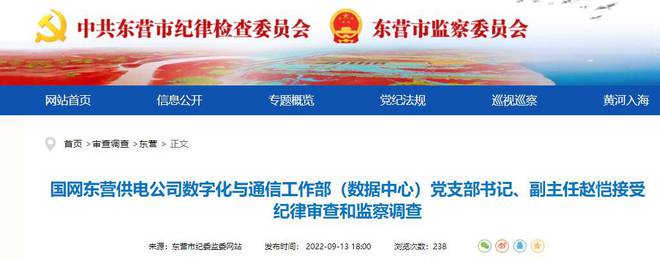 據(jù)廣饒縣紀委監(jiān)委消息:國網(wǎng)東營供電公司數(shù)字化與通信工作部(數(shù)據(jù)中心)黨支部書記、副主任趙愷涉嫌嚴重違紀違法,目前正接受中共國網(wǎng)東營供電公司紀委紀律審查和廣饒縣監(jiān)委監(jiān)察調(diào)查。