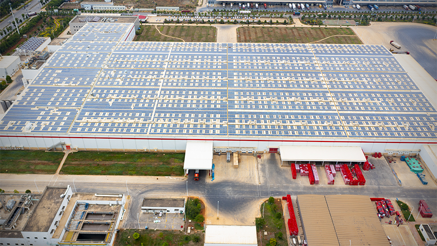 航拍呈貢區(qū)內(nèi)企業(yè)房頂?shù)墓夥?6月8日攝)。新華網(wǎng) 徐華陵 攝