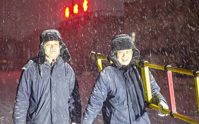 2月20日,國網(wǎng)東光縣供電公司工作人員冒雪夜巡,全力保障電采暖用戶可靠用電。馬磊 攝