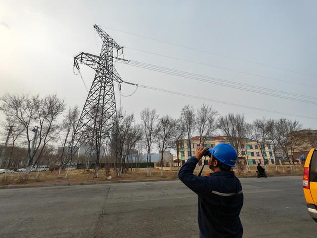 國網(wǎng)沈陽供電公司輸電工區(qū)工作人員巡視220千伏繁香一二線,確保供電安全可靠。