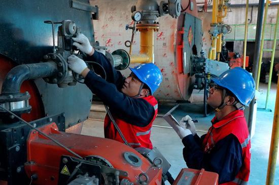 國網(wǎng)無極縣供電公司工作人員到鑫光熱力有限公司檢查供暖用電設(shè)備。程曉坤攝