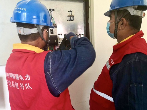 “好的,我們馬上過去。”黨員服務隊隊員阿不力提甫·開文放下電話立即向所長匯報,據(jù)對村委會供電的提前預測,阿不力提甫·開文與同事帶好所需工具,做好自身防護和車輛消殺工作后,驅車趕往現(xiàn)場處理。