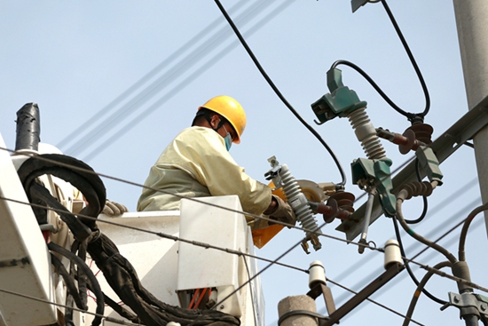 中國電力網(wǎng)訊 4月25日,在濰坊壽光市紀(jì)臺鎮(zhèn)三官村,國網(wǎng)壽光市供電公司帶電作業(yè)人員對10千伏紀(jì)四線三官支線帶電更換跌落開關(guān),及時消除線路運行隱患,電力供應(yīng)更加安全可靠,有力保障了鄉(xiāng)村農(nóng)業(yè)生產(chǎn)用電。