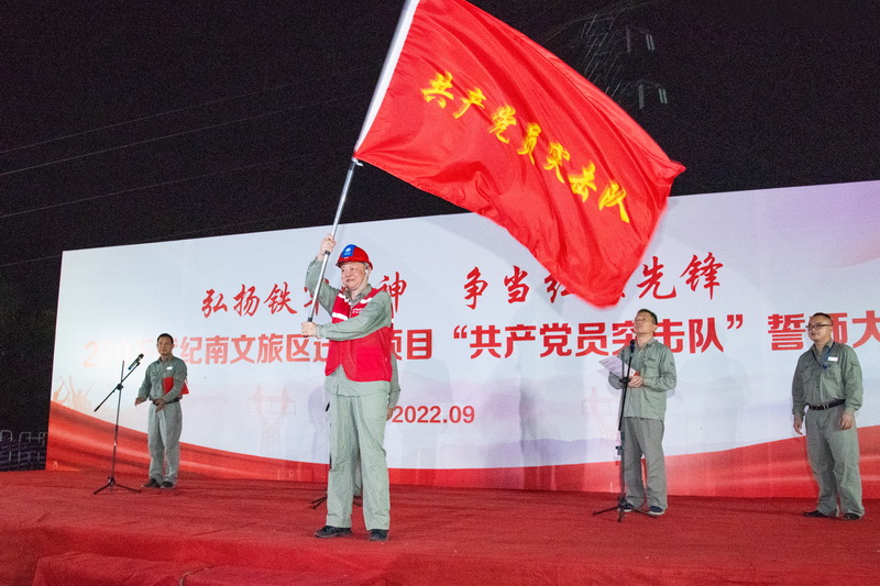 “黨員突擊隊將充分發(fā)揮黨組織戰(zhàn)斗堡壘作用,全力沖鋒,完成攻堅任務(wù),大力弘揚(yáng)荊電鐵軍精神,全面完成文旅區(qū)220千伏線路遷改工程各項建設(shè)任務(wù),確保務(wù)期必成!”