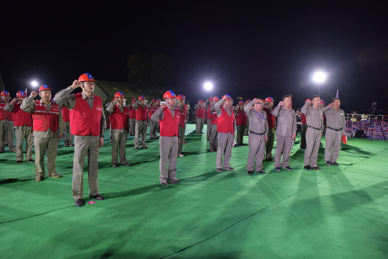 2022年9月15日22時30分,荊州文旅區(qū)220千伏遷改項目“三跨大會戰(zhàn)”,“共產(chǎn)黨員突擊隊”誓師大會現(xiàn)場人頭攢動,施工團(tuán)隊統(tǒng)一著裝,個個精神抖擻,排列方陣,整齊劃一,重型施工機(jī)械有序排列,蓄勢待發(fā)。