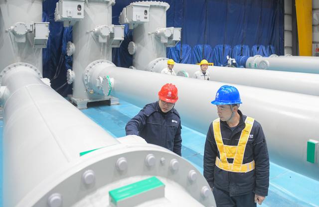 2024年1月30日,川渝特高壓交流工程1000千伏銅梁變電站,國網(wǎng)重慶市電力公司施工管理人員在1000千伏GIS移動無塵裝配車間進(jìn)行氣室壓力檢查。記者 張錦輝 攝/視覺重慶