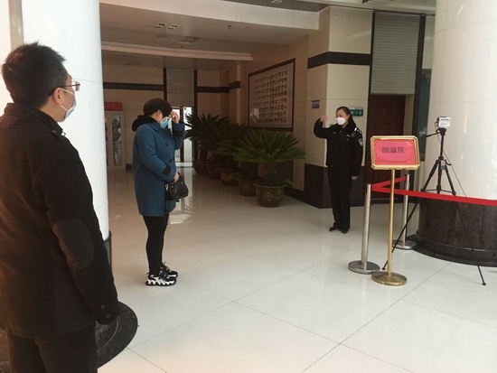 這是新冠肺炎疫情期間,在國網甘肅劉家峽水電廠辦公樓,該廠保衛(wèi)人員佟麗鑫耐心細致地進行辦公樓進出管理工作。
