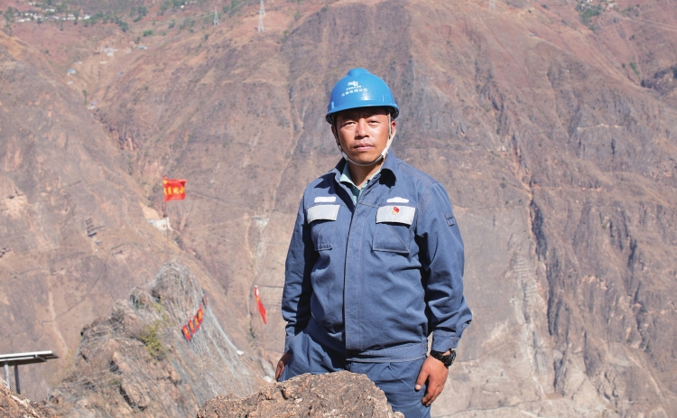 2019年,曾雷擔任烏東德電站至昆北換流站500千伏交流送出工程1標段項目經(jīng)理和黨員突擊隊隊長。電站右岸山坡出線段的A2號塔,塔位所在山體坡度達70度,一不留神就會滑下百米深的懸崖,這樣的極端地形,是曾雷工作22年來第一次遇到。