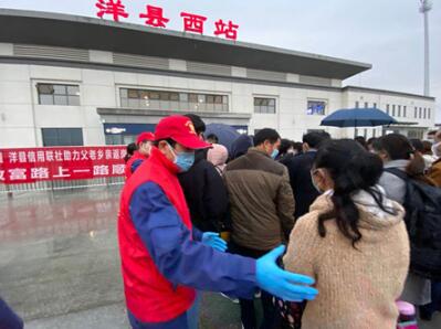 青年戰(zhàn)“疫”突擊隊攜帶一次性雨衣、純凈水等物資前往洋縣西站,參與了運送農(nóng)民工復工返崗高鐵專列的志愿服務活動,不畏風雨積極助力復工復產(chǎn)。