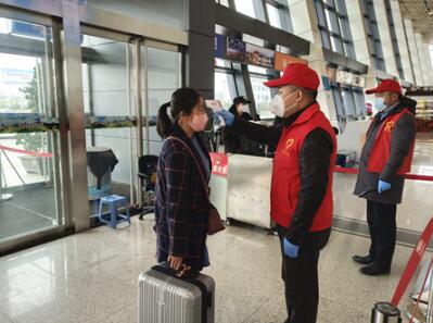 上午9時,20余名志愿服務隊員頭戴“小紅帽”、身穿“紅馬甲”,在城固縣柳林機場主動擔當路口值守、旅客體溫測量、防控知識宣傳、疫情排查等工作。