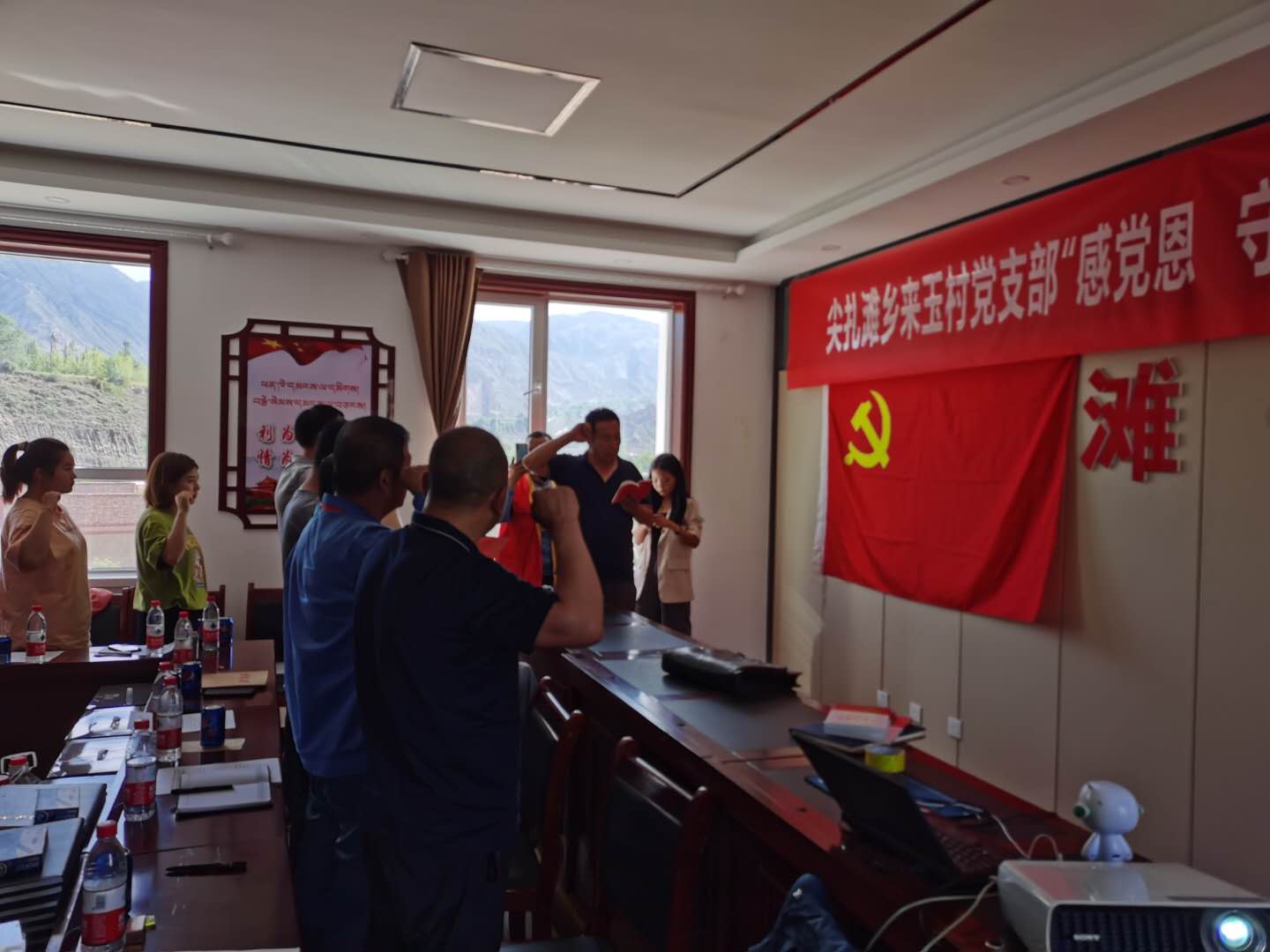 在尖扎來玉村黨員活動室內(nèi),兩支部全體黨員在來玉村黨支部才讓加書記帶領(lǐng)下,面對黨旗,高舉右拳,用藏語和漢語兩種語言重溫入黨誓詞。雖然語言不同,但是每名黨員口中喊出的錚錚誓言,字字句句,神圣而豪邁,依舊強烈震撼著每一位黨員的心,更加堅定了大家“對黨忠誠,積極工作,為共產(chǎn)主義奮斗終身”的理想信念。宣誓結(jié)束后,兩支部全體黨員、認(rèn)真觀看了愛國主義紀(jì)錄片《紅色氣質(zhì)》,通過紀(jì)錄片的介紹,使全體黨員進一步了解了黨99年的光輝歷程,同時珍惜得來不易的和平、幸福的生活。紀(jì)念這段歷史是為了讓廣大黨員知道今天的幸福生活來之不易,為了明天的美好生活,作為新時代的黨員還需加倍努力。