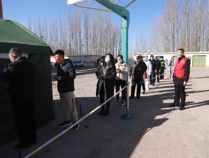 從晨光熹微到正午時(shí)分,在核酸檢測(cè)現(xiàn)場(chǎng),黨員志愿服務(wù)隊(duì)的成員們宣傳、普及檢測(cè)程序,維護(hù)現(xiàn)場(chǎng)秩序,通知居民及時(shí)參與檢測(cè),告知居民在核酸采樣期間聽(tīng)從指揮、全程佩戴口罩,有序完成掃碼、登記、采樣工作流程。“大爺,您把手機(jī)打開(kāi),我們幫您打開(kāi)健康碼。”“我們有兩條檢測(cè)通道,請(qǐng)大家有序進(jìn)行核酸檢測(cè)。”志愿者們截止當(dāng)天下午14點(diǎn),共配合完成390余名居民核酸檢測(cè)志愿服務(wù)工作。同時(shí),為了做好此次全員核酸檢測(cè)工作,杭錦供電公司第一時(shí)間啟動(dòng)專(zhuān)項(xiàng)保電工作,及時(shí)聯(lián)絡(luò)相關(guān)街道、社區(qū)、疫情防控點(diǎn)及核酸檢測(cè)點(diǎn),了解重點(diǎn)場(chǎng)所的用電情況與用電需求,對(duì)電網(wǎng)線路、設(shè)備開(kāi)展特殊巡視,全面開(kāi)展保電工作,保證重點(diǎn)區(qū)域正常用電。同時(shí),由“電駱駝”志愿服務(wù)隊(duì)黨員示范崗帶頭,各部門(mén)、班組積極響應(yīng),對(duì)包聯(lián)小區(qū)周?chē)纳虘艉托^(qū)內(nèi)的居民都進(jìn)行了地毯式的信息統(tǒng)計(jì)。閆恒作為黨員示范崗之一,也是這次疫情防控的主要負(fù)責(zé)人,主動(dòng)承擔(dān)起排查包聯(lián)小區(qū)人員信息及其他工作要求,一遍一遍核對(duì)包聯(lián)住戶信息,有聯(lián)系不到的住戶他便主動(dòng)上門(mén)了解情況,生怕漏掉任何一戶信息。