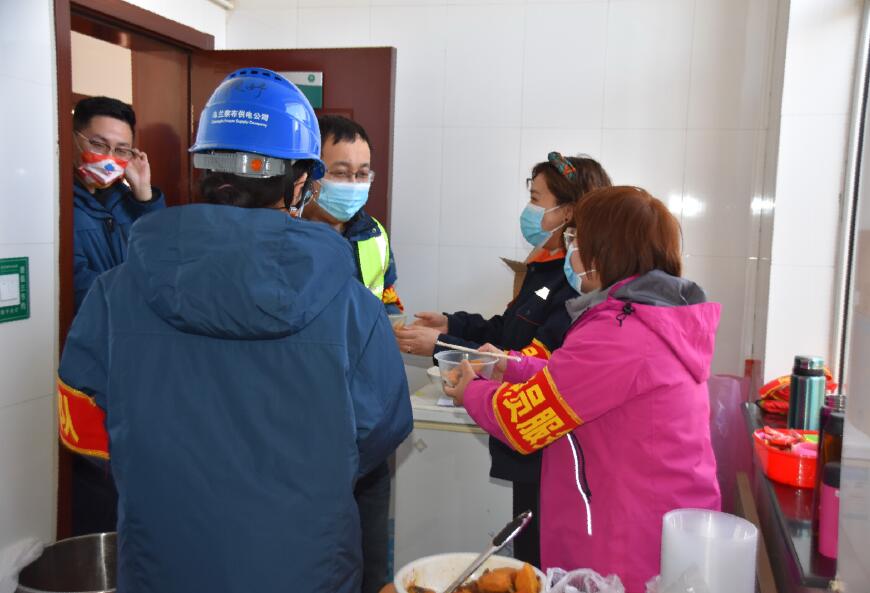 為使檢修一線職工以最飽滿的熱情投入到本次春檢工作中,四子王輸變電管理處成立的黨員服務隊為春檢的工作人員送去了暖心午餐。黨員服務隊的女同志說:“雖然我們不能工作在春檢一線,但是做后勤保障工作,也一樣是為檢修工作出力,在哪個崗位都要發(fā)光發(fā)熱。”