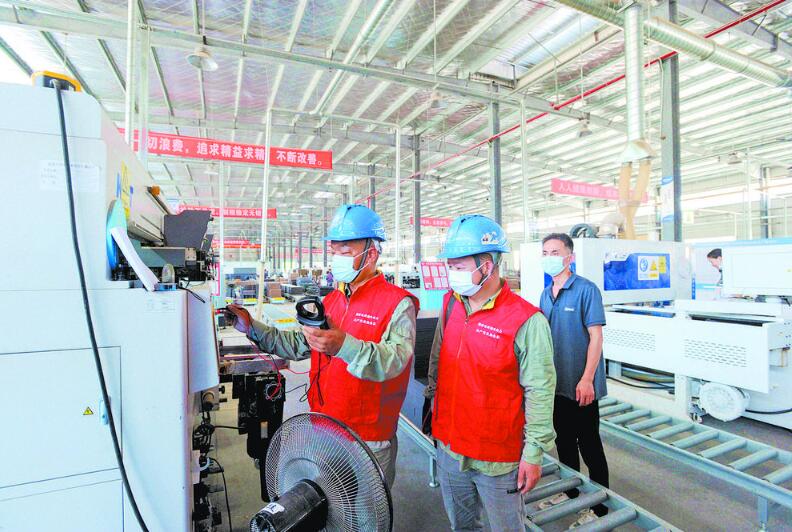 國家電網(wǎng)湖北電力(孝感)共產(chǎn)黨員服務(wù)隊隊員來到應(yīng)城市一家企業(yè)的生產(chǎn)車間,幫助企業(yè)檢查用電設(shè)備。
