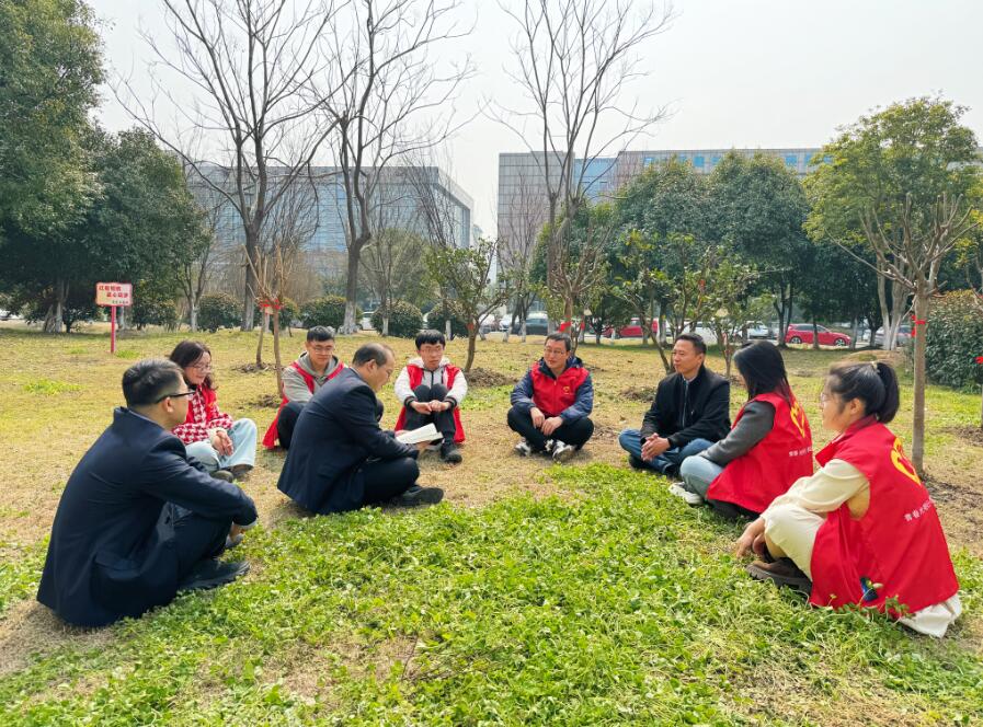 隨后,三方黨支部號召黨員、團員共同踐行“綠水青山就是金山銀山”理念,開展“共植黨員林”植樹活動。身穿紅色馬甲的黨員、團員們彼此團結(jié)協(xié)作、緊密配合,有條不紊的進行著揮楸鏟土、扶苗填坑、提桶澆水等各環(huán)節(jié)作業(yè)。經(jīng)過大家的共同努力,三個黨支部一起種下的“共建樹”在土地上挺立著,“黨建紅”與“生態(tài)綠”交相輝映,呈現(xiàn)出春意盎然、生機勃勃的景象。