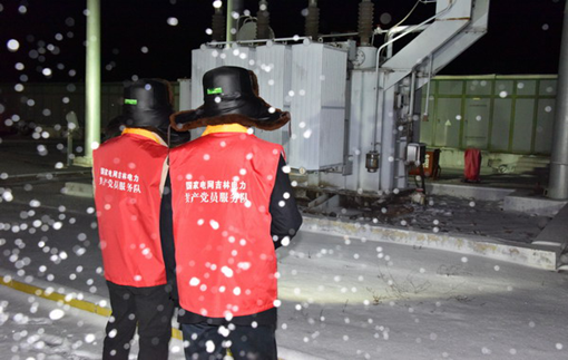 國網(wǎng)長春供電公司員工雪中監(jiān)測(cè)變電設(shè)備。
