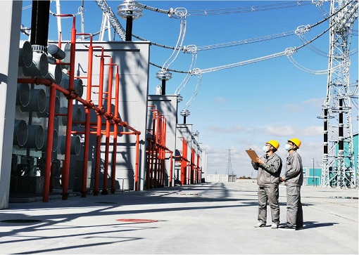 國網(wǎng)冀北電力運維人員在特高壓張家口站巡視設(shè)備,全力保障電力可靠供應。