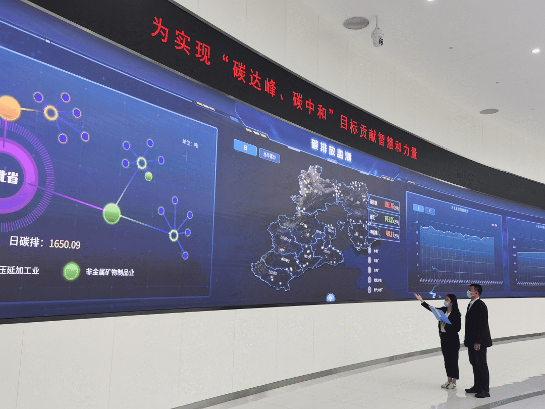 國網(wǎng)河北電力員工通過碳達(dá)峰、碳中和監(jiān)測平臺分析主要行業(yè)碳排放情況。