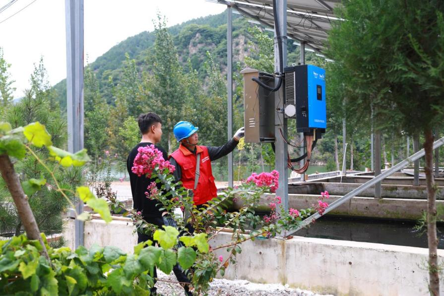 國網(wǎng)河南洛寧縣供電公司員工為冷水魚養(yǎng)殖戶排查消除用電故障。