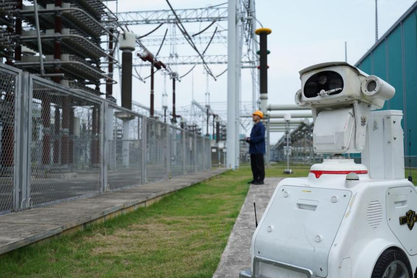 國網(wǎng)浙江超高壓公司運檢人員攜智能巡檢機器人檢查設(shè)備運行情況。
