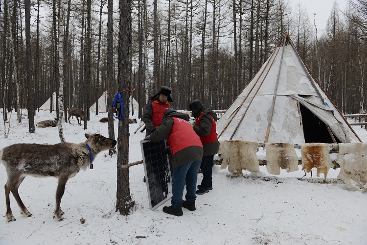 國網(wǎng)根河市供電公司員工楊玉明說:“我們已經(jīng)連續(xù)三年春節(jié)前夕來馴鹿放養(yǎng)點檢查光伏發(fā)電板和用電設(shè)備,并為他們送去新春的燈籠春聯(lián)和新春的祝福,讓他們在山上也能快快樂樂過大年。”