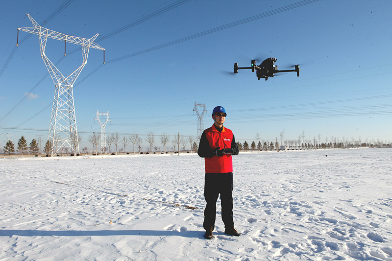國(guó)網(wǎng)冀北超高壓公司員工操作無(wú)人機(jī)巡查輸電大通道