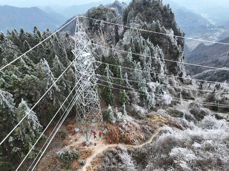國(guó)網(wǎng)湖南張家界供電公司員工對(duì)天子山景區(qū)輸電線路進(jìn)行觀冰測(cè)量