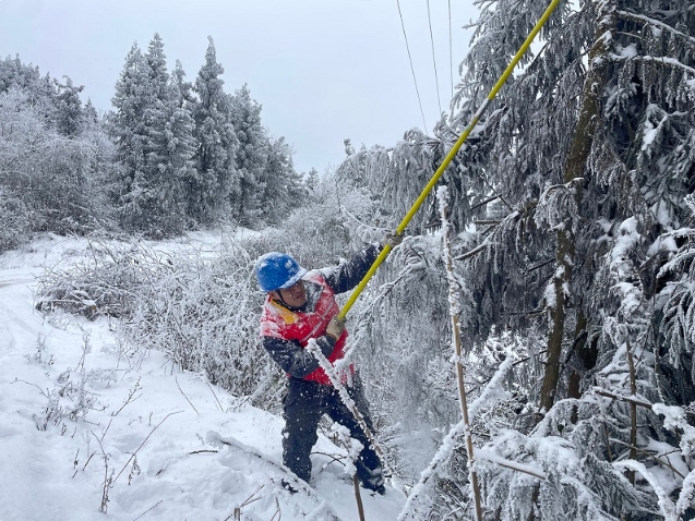 國網重慶電力員工清理10千伏桐楠線樹障。