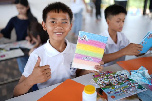 老撾“希望之手”教育中心的校長蘇帕潘?恒莉說:“每一位孩子,無論是否有聽力障礙,都有權(quán)享受閱讀的樂趣,感受藝術(shù)的熏陶。中國南方電網(wǎng)公司‘希望之光’公益行所做的工作,為學(xué)校的孩子們創(chuàng)造了更多可能性,搭建了一座知識與藝術(shù)的橋梁,讓他們在閱讀中汲取力量,在繪畫中釋放創(chuàng)造力,幫助他們樹立自信心,從而更好地融入社會”。