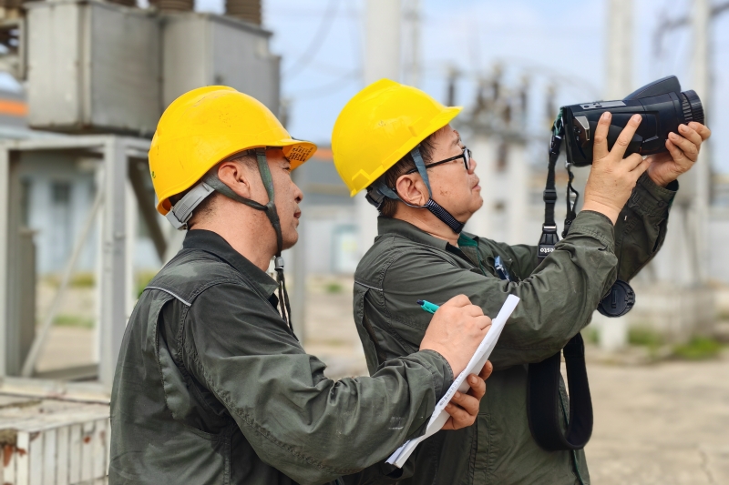 國網(wǎng)河北邢臺供電公司員工在35千伏華龍站進行巡檢測溫。