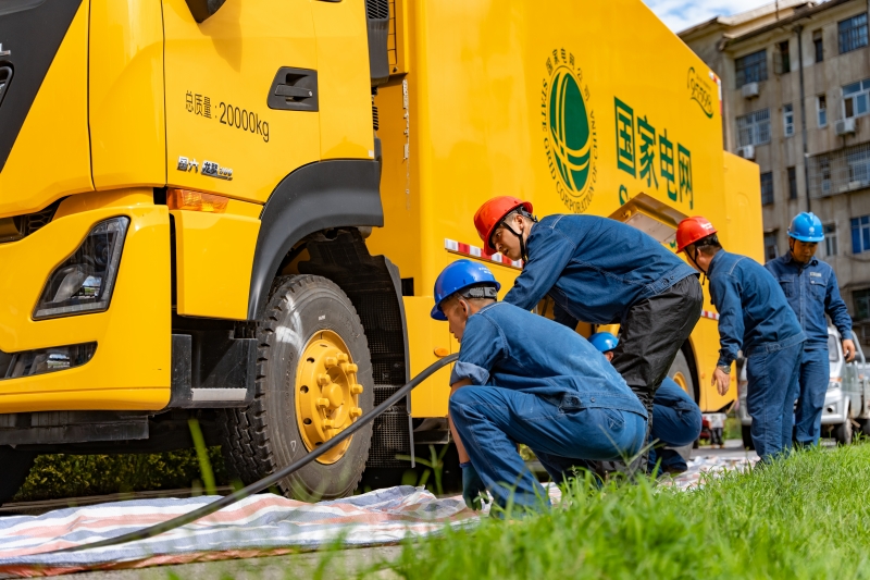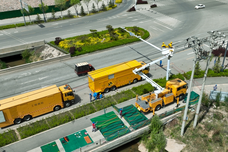 國網(wǎng)青海西寧供電公司員工在10千伏堡十路現(xiàn)場開展電源車并網(wǎng)作業(yè)。