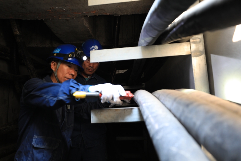 國網(wǎng)黑龍江大興安嶺供電公司員工檢查紅旗線10千伏電纜運行情況。