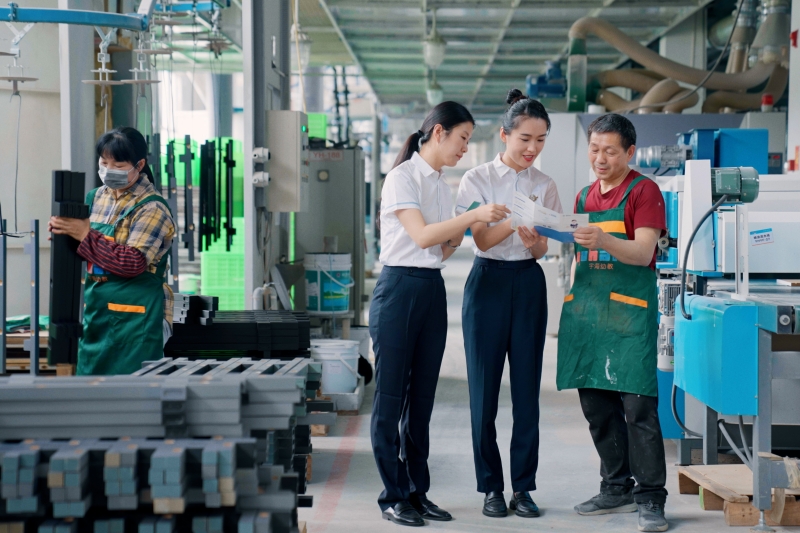 國網(wǎng)浙江麗水供電公司員工在景寧智能家居生產(chǎn)企業(yè)了解生產(chǎn)用電需求。