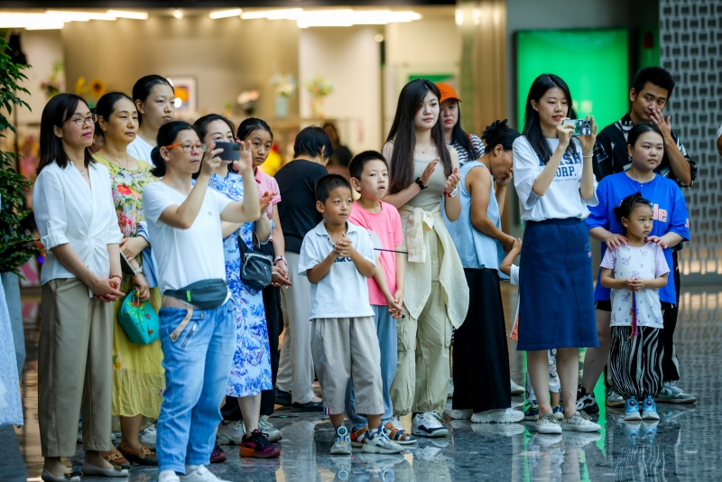 為了展現(xiàn)巴西本土音樂(lè)藝術(shù)特色,樂(lè)團(tuán)先演奏了當(dāng)?shù)孛栋臀鳀|北部音樂(lè)集錦》和《水漾巴西》,熱烈奔放的桑巴曲風(fēng)吸引了許多觀眾隨著音樂(lè)舞動(dòng)。